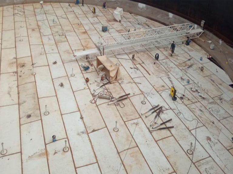 Maintenance of two oil storage tanks S2 and S8 •Engineering •Procurement •Tanks cleaning and desgassing •Dismantling and removal of roof and bottom plates •Bituminous concrete replacement •Installation and welding of new roof and bottom plates •Installation of new floating roof seal and drainage hose •Foam and dewatering piping replacement •Sand blasting and painting works •Hydrostatic test |